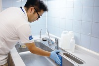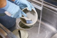 取り外し可能な部品を取り外し、専用洗剤を用いてブラシ等で洗浄。